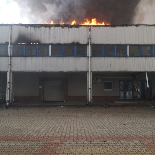 Przed 21.00 na miejscu pracowały 22 zastępy PSP i OSP. Pożar wybuchł ok. 18.00 w hali magazynowej o powierzchni 5 tys. mkw. Olbrzymie kłęby dymu były widoczne w wielu kilometrów. Strażacy na razie nie mówią o opanowaniu pożaru, bo - jak tłumaczą - nie jest znana dokładna lokalizacja pożaru i nie na całkowitej pewności, że ogień wewnątrz hali już się nie rozprzestrzenia.