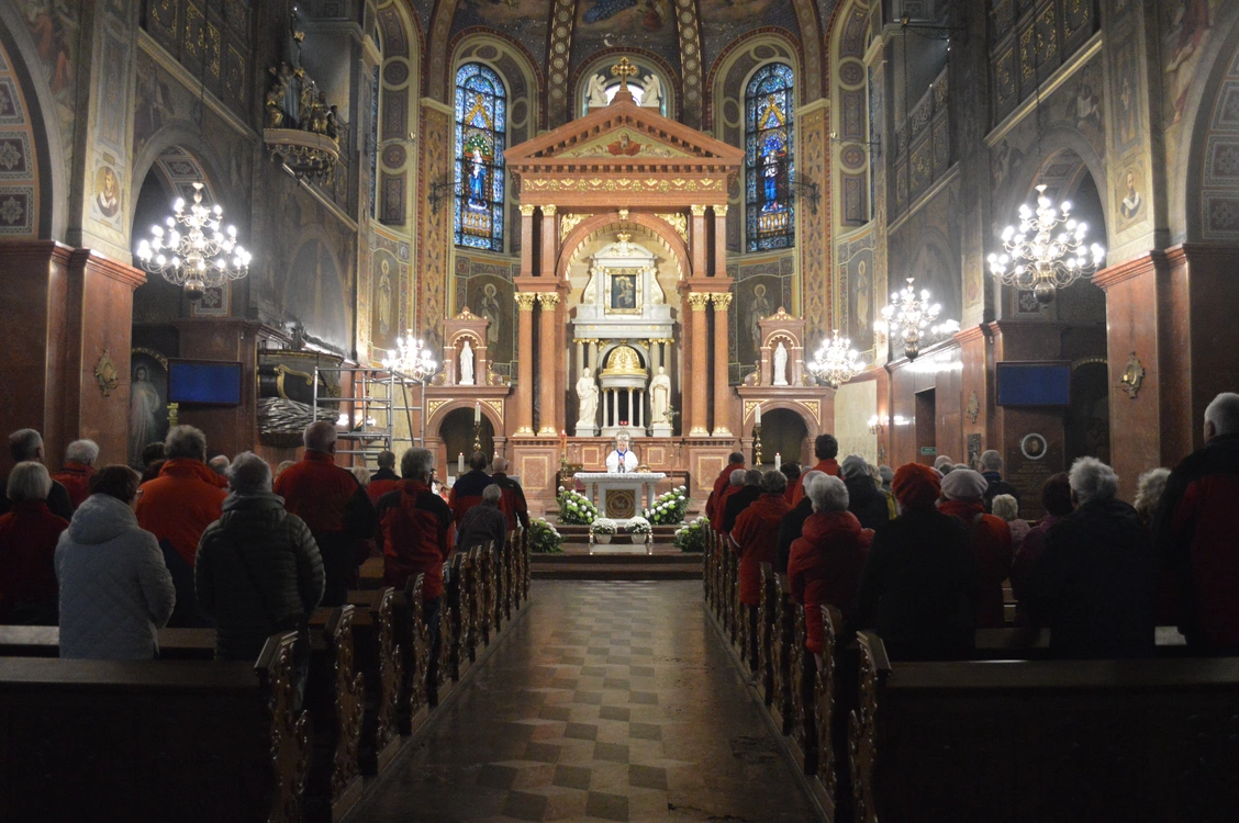 W piekarskim sanktuarium przewodników przywitał ks. proboszcz Mirosław Godziek. Wizyta w bazylice w Piekarach Śląskich - z racji trwającego Roku Świętego i jubileuszu 100-lecia archidiecezji - była także okazją do zyskania odpustu zupełnego, do czego zachęcali tego dnia duszpasterze. Eucharystii, w czasie której modlono się także za zmarłych przewodników, przewodniczył ks. Piotr Wenzel, proboszcz parafii św. Andrzeja Boboli w Rudzie Śląskiej-Wirku i kapelan przewodników.