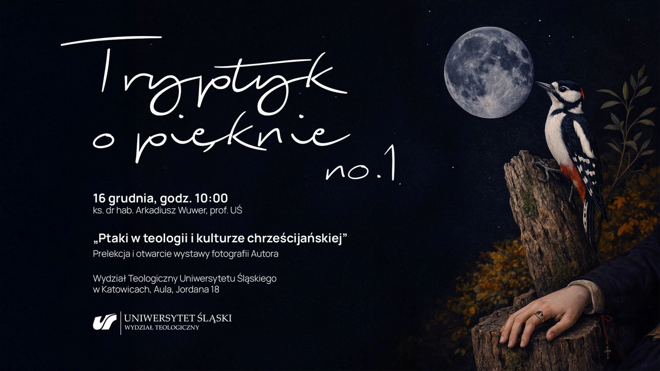 Wydział Teologiczny UŚ zaprasza na prelekcję ks. dr. hab. Arkadiusza Wuwera, prof. UŚ pt. "Ptaki w teologii i kulturze chrześcijańskiej". Wydarzenie odbędzie 16 grudnia o godz. 10 w auli wydziału i będzie połączone z otwarciem autorskiej wystawy fotografii ptaków.