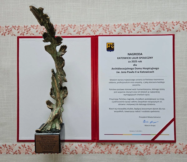 - Nagroda ta to dla nas zaszczyt i wyróżnienie, ale to przede wszystkim zauważenie naszego wysiłku i cichej, pokornej służby wobec osób w terminalnym okresie życia - podkreślają przedstawiciele Archidiecezjalnego Domu Hospicyjnego św. Jana Pawła II w Katowicach.