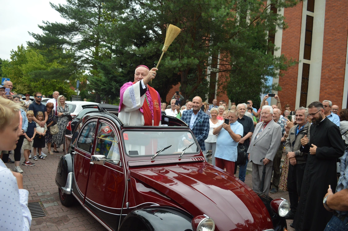 Po Mszy św. bp Adam Wodarczyk pobłogosławił kierowców oraz przejechał ulicami parafii, aby poświęcić pojazdy.