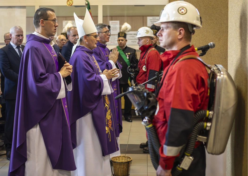 Eucharystię w cechowni kopalni "Wujek" sprawował abp Andrzej Przybylski.